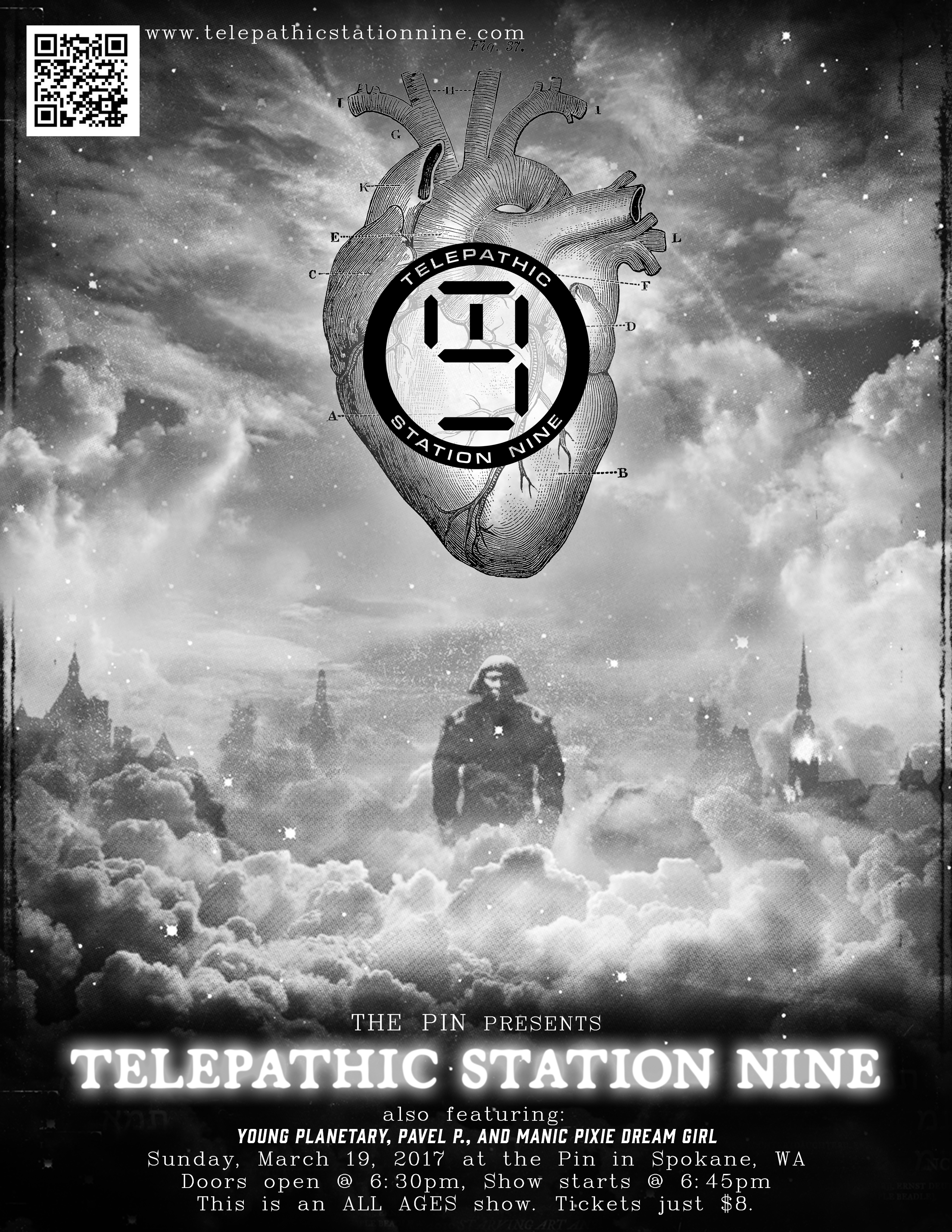On Sunday, March 19th, Telepathic Station Nine will be live in concert at the Pin. This is an All Ages show. Tickets are $8. Doors open at 6:30pm. Show starts at 6:45pm. Come out and cheer on Spokane's own Psychedelic Rock trio as they explore the waves of sound inhabiting your aural experience.